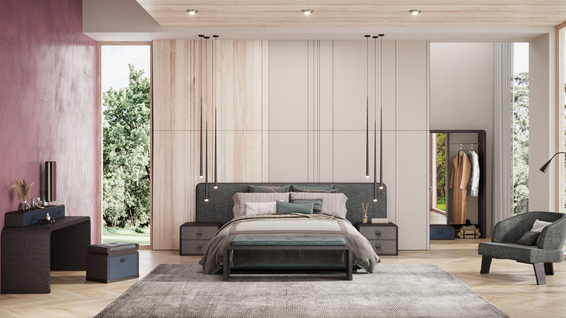 Each piece in this collection, including the bed, armchair, vanity, bench, night table, mirror, and pouf, is thoughtfully designed to enhance the essence of your home. The name “Eclipse” reflects the intrinsic relationship between form and space, creating an alluring atmosphere that transforms your bedroom into a haven of comfort and relaxation.