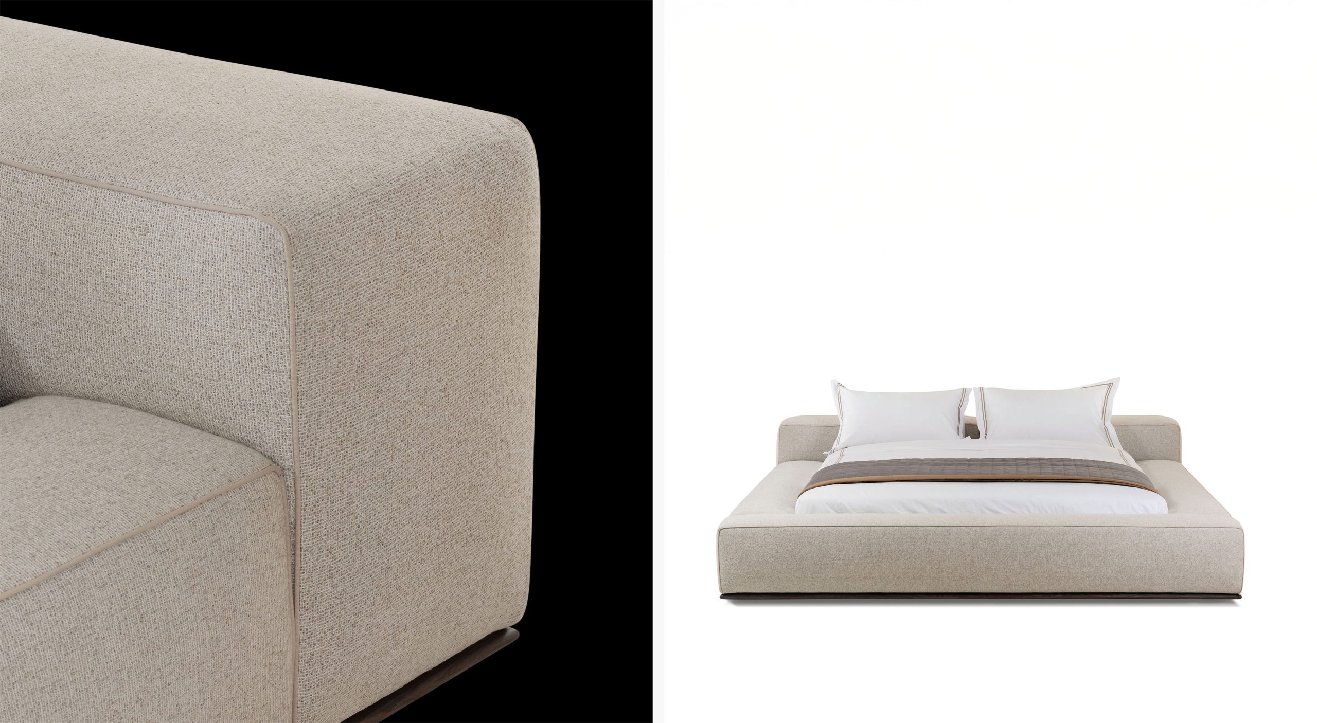 Designed with comfort in mind, the Ocean Bed features a plush, upholstered headboard and a robust wooden structure. Its minimalistic yet sophisticated aesthetic ensures it fits seamlessly into any bedroom decor.
